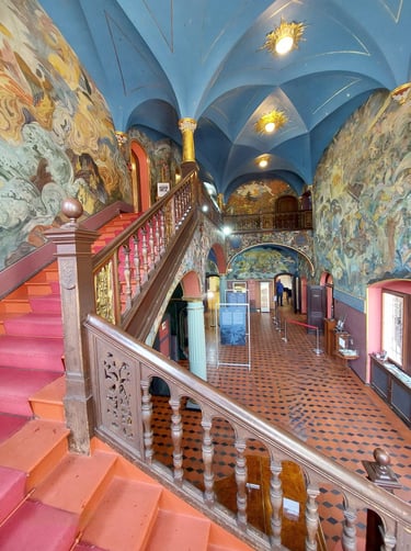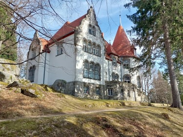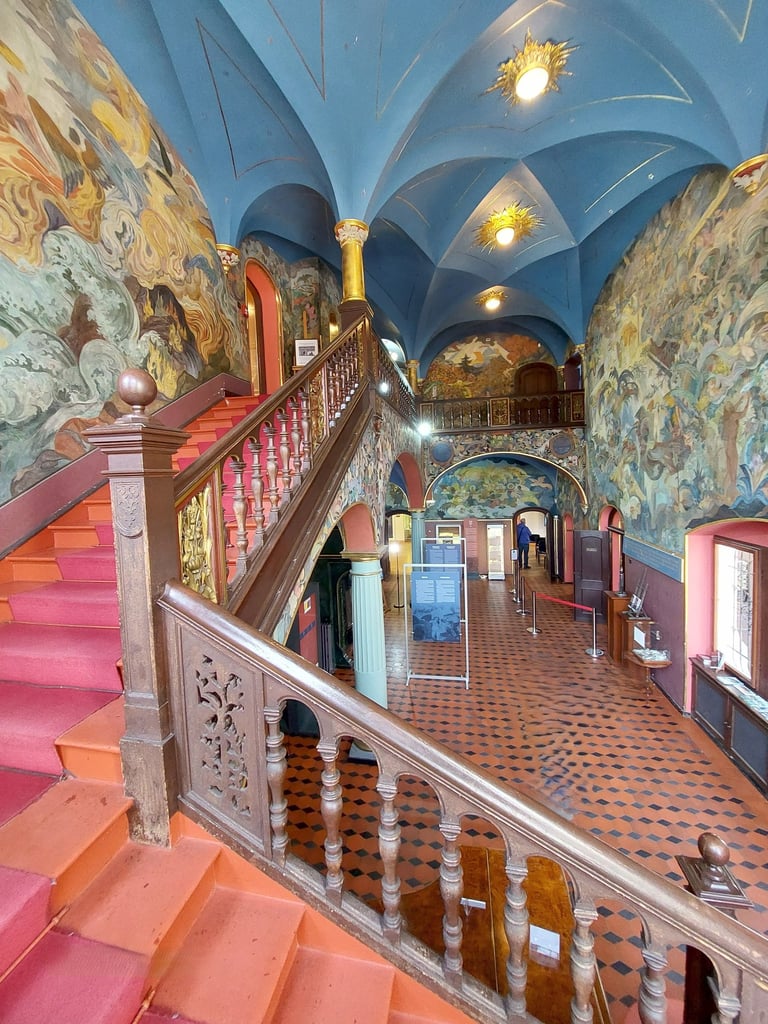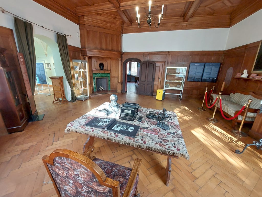 Įdomi vieta, kurią verta pamatyti. Puikiai išsilaikęs XX amžiaus pirmosios pusės namas, kadaise priklausęs 1912 m. Nobelio literatūros premijos laureatui Gerhardui Hauptmanui. Tai vienas žymiausių vokiečių natūralistinės dramos kūrėjų. Tik tiek apie jį žinau iš Vikipedijos. Pirmas aukštas ir dalis pirmojo aukšto yra atviri visuomenei. Pats pastatas įspūdingas, ypač graži salė su freskomis ant sienų ir lubų. Eksponatų mažai, o kolekcija gana ribota. Bet vską atpirko interjeras – jis fantastiškas. Kaina 10 PLN už standartinį bilietą. Girdėjau, kad parkingas kainuoja dar 20 zlotų už stovėjimą visai dienai, bet mums būnant parkingo kasa nedirbo. Ne sezonas! Muziejus dirba kasdien nuo 9 iki 16 val.