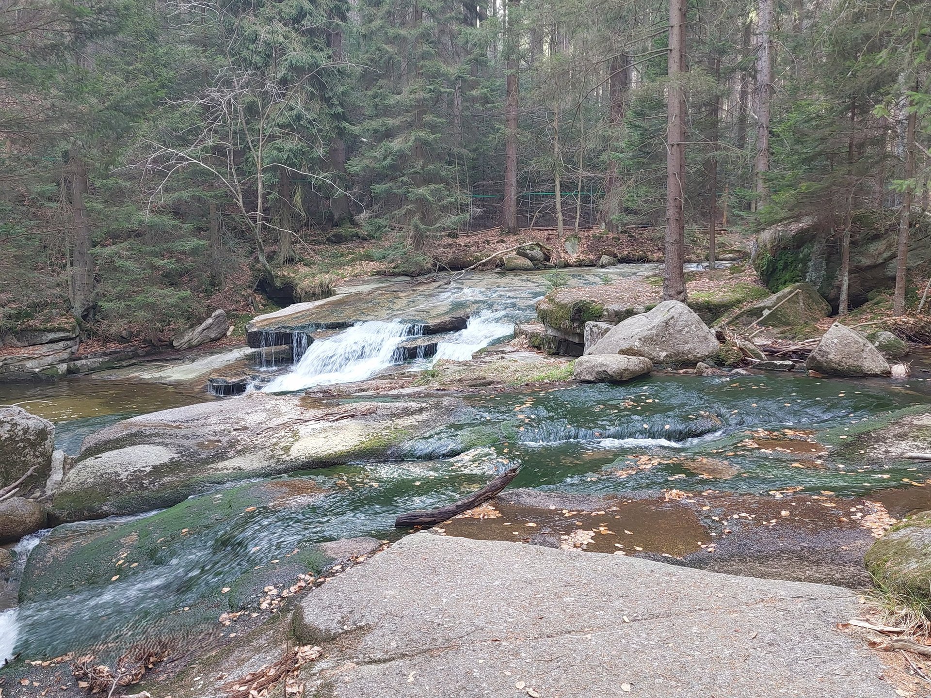 Einame krioklio link. Įėjimas mokamas – 11 PLN/asm., nes tai Karkonoski Park Norodowy (Karkonošų Nacionalinis Parkas). Mokama vietoje grynais arba kortele.