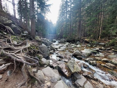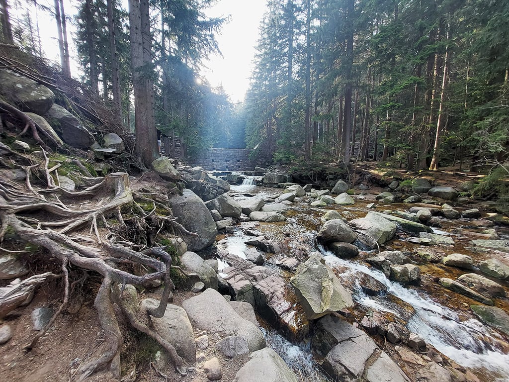 Paskutinė diena Szklarska Poręba. Žmona prieš išvažiavimą norėjo pasivaikščioti gamtoje. Tiesiog kur gražu. Po neilgų paieškų apsistojome ties tvenkiniais. Juk šios apylinkės garsėja ne tik kriokliais, bet ir tvenkiniais. Prie vieno iš jų ir nuvažiavome. Tiesiog pasivaikščioti.