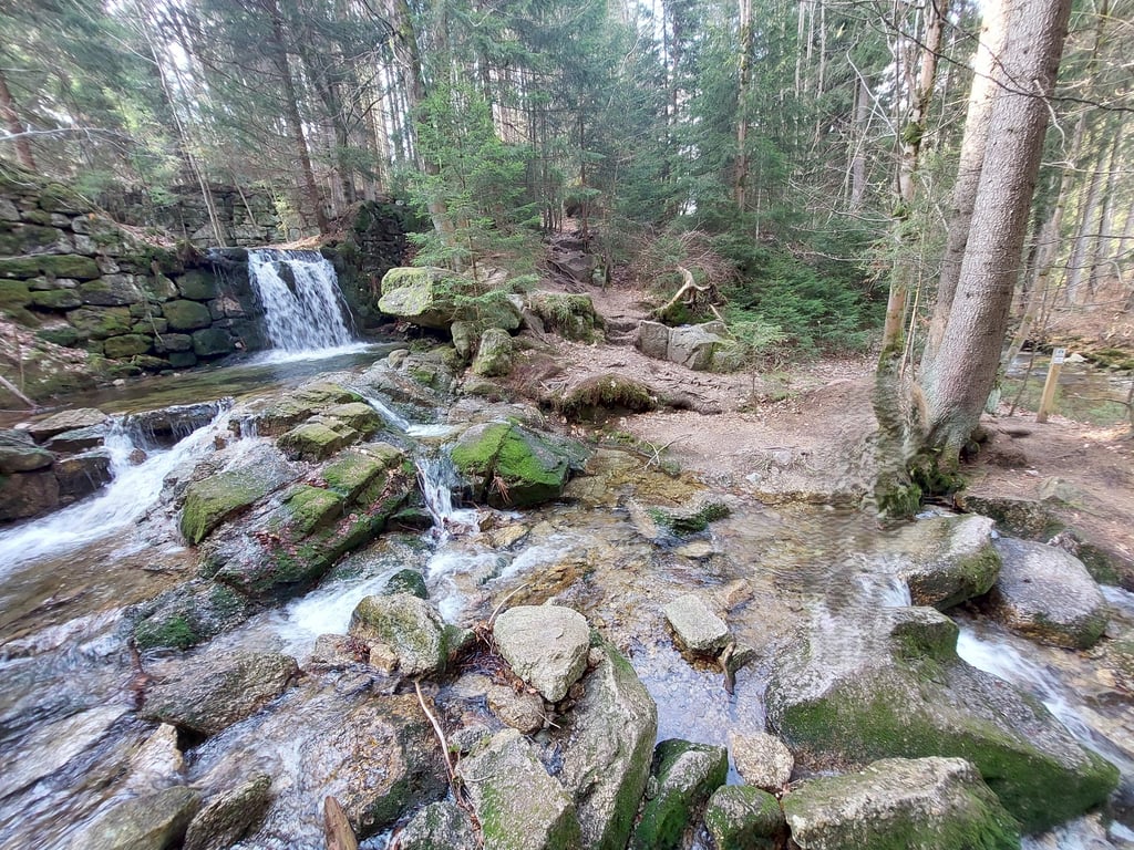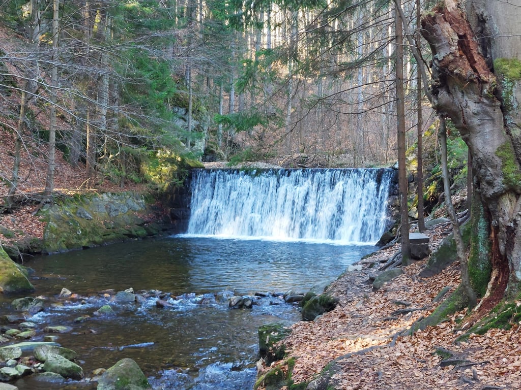 Verčiasi kaip Lašelių krioklys, bet vandens jame buvo gerokai daugiau negu Laukiniame krioklyje. Gražus krioklys, tiksliau, dirbtinė kaskada, bet labai žavinga vieta. Automobilį reikia pastatyti Izerska gatvėje kur pažymėtas parkingas. Nuo pagrindinio kelio, maždaug po 70–100 metrų, pasukite į kairę į mišką (matysis išmintas takas). Maždaug po 5 minučių pasieksite savo kelionės tikslą. Vėlgi prie krioklio buvome tik mes ir dar viena jaunuoliu pora. Ir jokio kopimo, ėjimas vien lyguma. Miškas primena vaizdus iš „Narnijos kronikų“: galingi medžiai, apaugę žaliomis samanomis, šaknys susiraitę kaip gyvatės, žemę dengia įspūdingi rieduliai. Labai rekomenduoju. Beje, nuo čia prasideda turistinis takas Złoto Gór Izerskich - Szlak szklarski w Górach Izerskich (Izeros kalnų auksas - stiklo takas Izeros kalnuose).