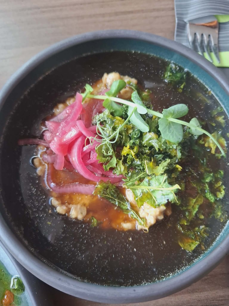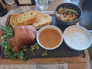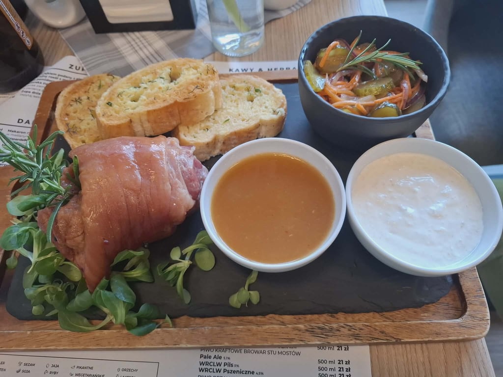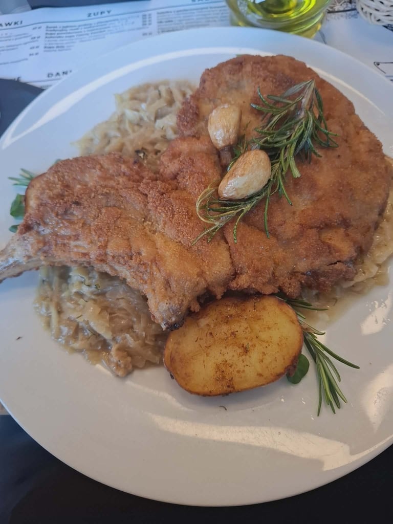 Vakarienė buvo numatyta mūsų viešbučio „Czarny Kamień“ restorane. Ir štai: skaniau kaip šiame restorane niekur aplink neradome! Kainos taip pat nesikandžiojo. Ne veltui žmonės specialiai čia atvažiuoja vakarieniauti. Sriuba Czarny Kamień (29 PLN) – firminė restorano rūgštynių sriuba. Pateikiama įspūdingai: atnešama lėkštė su paniruotėje apkeptu kiaušiniu ir priedais, o tada iš ąsotėlio supilamas sultinys. Skonis vertas vaizdo. Karbonadas su kaulu (57 PLN) tirpo burnoje, o porcija vienam žmogui buvo realiai neįveikiama. Kartu patiekti troškinti kopūstai gal pirmą kartą Lenkijoje taip pat buvo skanūs, išlaikantys deramą rūgštumo ir saldumo balansą. Karka, skaniausia kokią esu valgęs (59 PLN), iš gėrimų - aperol spritz 33 PLN ir alus 17 PLN. Sąskaita 212 PLN (51,26 eur.).