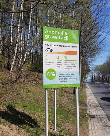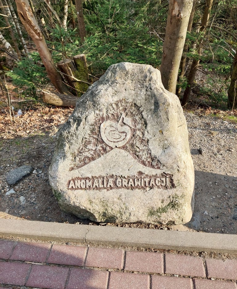 Gravitacinės anomalijos vieta, kur viskas, kas gali riedėti, rieda į kalną. Išbandykite, jei norite. Tai tikrai veikia. Jeigu tikėti šalia esančiu aprašymu, Žemėje yra vietų, kur gravitacijos dėsniai neveikia taip, kaip visur kitur. Tokios yra Aukso kalvos apylinkės Kanadoje, vietovė Gansu provincijoje Kinijoje, Langedokas Prancūzijoje ir vieta netoli popiežių vasaros rezidencijos prie Albano ežero Via del Laghi gatvėje. Tokia unikali vieta taip pat yra Karpače, Stražackos gatvės atkarpoje, vedančioje nuo Karkonoškos gatvės link Laukinio krioklio. Tokie stebuklai vyksta, ir niekas nežino, kodėl. Skeptikai sako - padėkite gulsčiuką ir viskas bus aišku. Gal ir taip, bet išbandžiau su automobiliu. Kylant į kalvą automobilis lėtėjo ir atrodė, kad tuoj sustos. Tačiau pasiekus gravitacinę anomaliją žymintį akmenį, automobilis pradėjo greitėti! Šito aš negaliu paaiškinti. Nes tas pats kelias, be posūkių, tiesus, su tolygiu pakilimu į kalvą. Iki pusės kalvos lėtėjimas, nuo pusiaukelės - greitėjimas! Tą patį išbandėme su vandens buteliuku. Jis rieda ne nuo kalno, bet į jį! Netikite, nuvažiuokite ir išbandykite patys.