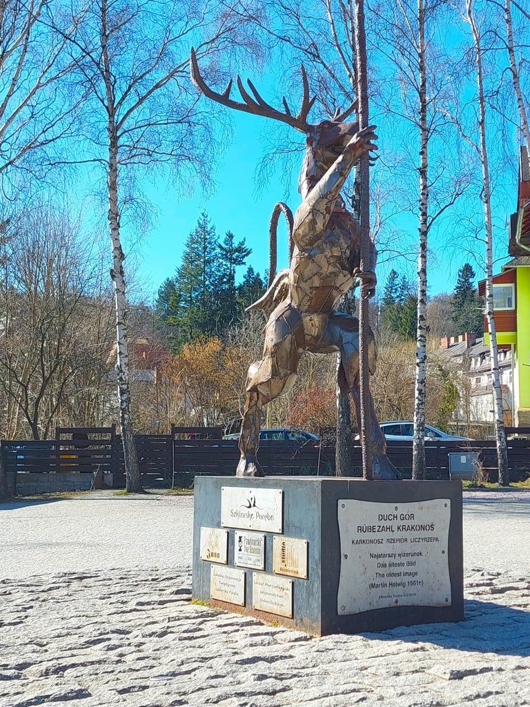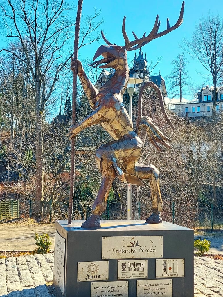 Pasivaikščioję grįžome į Szklarska Poręba. Reikėjo apsipirkti lauktuvių ir šiaip miestelį apžiūrėti. Galu gale – sužinoti, kaip atrodo Karkonošų Kalnų dvasia. Nes miestelio centre yra skulptūra, vaizduojanti Kalnų dvasią.