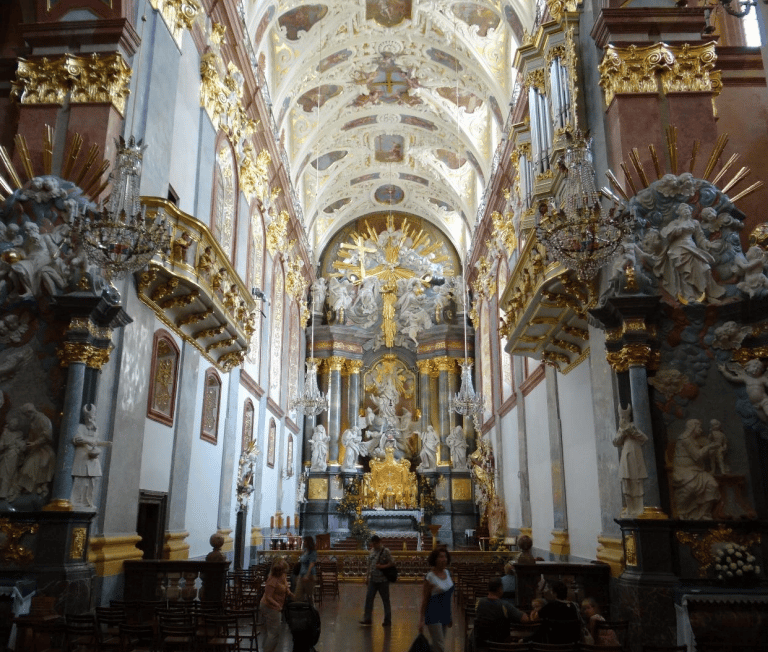 Už parkingo pastato yra Karlo aikštė ir bažnyčia (Karlskirche) su taip vadinamais Maro stulpais.