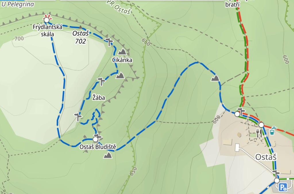 Mokėti tik grynais. Kaina dienai 100 CZK (apie 4,10 Eur.). Eurais neima, bet galite mokėti Lenkijos zlotais - 25 PLN. Kursas ne pats palankiausias (100 CZK yra apie 17,50 PLN), bet niekas nesismulkina, juk kito parkingo nėra. Rekomenduojama atvykti kuo anksčiau, nes vidurdienį parkinge nebebūna vietos. Tako pradžioje yra restoranas ir užkandžių kioskelis. Ten galima mokėti kortele. Šalia nemokami WC. Iki uolų teks paėjėti apie 700 m. Mėlynai pažymėta žiedinė trasa maždaug 1,3 km ilgio. Pradžioje buvo sunku, nes vis įkalnėn. Kelias smėlėtas ir akmenuotas. Akmenys nestabilūs ir per juos sunku eiti. Jeigu ne kalnų batai, būtų dar sunkiau. Bet kuo toliau, tuo lengviau darėsi kopti. Kelio akmenys vis didėjo, kol pavirto akmeniniu grindiniu. Pagaliau už kelio posūkio pasirodė pagrindinis uolų masyvas. Akmeninis grindinys veda kairiau šio masyvo, bet rekomenduočiau apžiūrą pradėti sukant dešiniau. Tai išsiaiškinau suradęs žemėlapį ir skaitydamas kitų keliautojų atsiliepimus.
