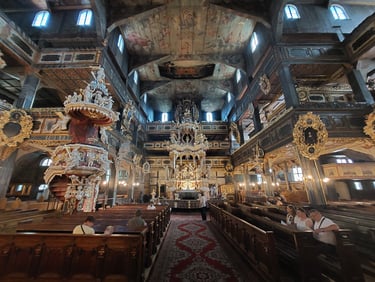 Bažnyčia ypatinga savo forma – ji pastatyta kaip kryžius, o medinis karkasas užpildytas moliu ir šiaudais. Daugiau kaip 1000 kvadratinių metrų pastate, suręstame be jokių vinių, telpa 7500 žmonių. Bet didžiausią įspūdį daro prabangus barokinis interjeras. Išorėje – tai kuklus medinis namas, viduje – auksu ir brangenybėmis tviskanti šventovė. Įėjus vidun man natūraliai „atvipo žiauna“. Atvirai pasakius, iš išorės tokiame kukliame pastate, aš nesitikėjau tokio kontrasto viduje. Čia viskas tiesiog alsavo prabanga. Buvau gerokai apstulbęs, pradžioje net fotografuoti buvau pamiršęs. Tai statinys, kurį būtina aplankyti.