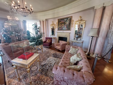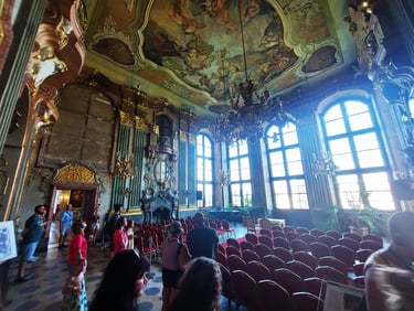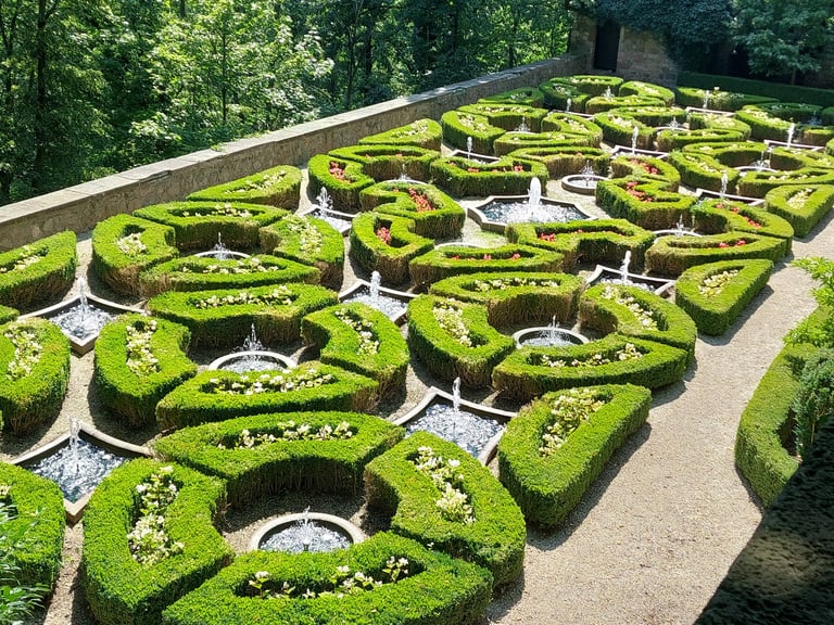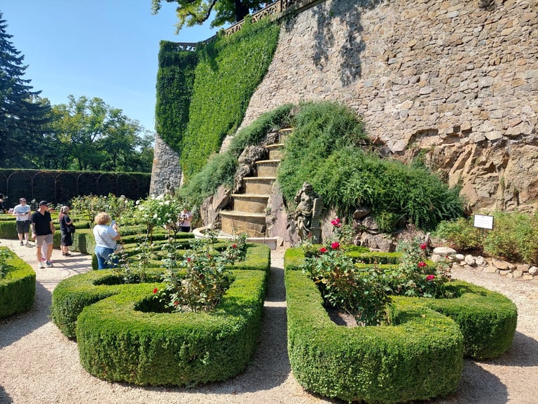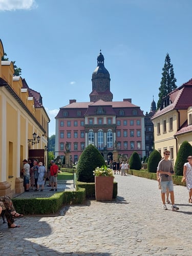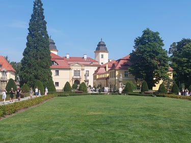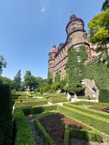 Į pilies požemius mes nepatekome, nes bilietus reikia užsisakyti bent prieš dvi dienas. Tačiau gavome bilietus apžiūrėti pačią pilį ir ją supančius sodus. Nuomonė buvo vieninga – nors pilyje pasakojama ją valdžiusių didikų šeimos istorija, yra įdomių archyvinių nuotraukų, tačiau visa ekspozicija nėra labai įspūdinga. Bet parko terasos, fontanai, reti augalai tikrai nuostabūs – pasivaikščioti po sodus būtina. Bilietas su audiogidu pilies ir terasų apžiūrai - 69 PLN (apie 16,50 Eur.).