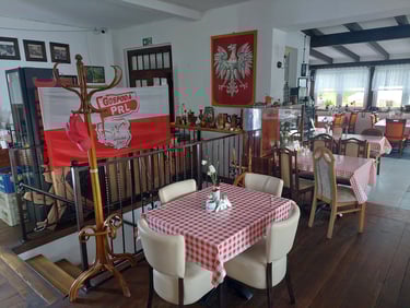 Jei „pasiilgote“ sovietinės (šiuo atveju Lenkijos Liaudies Respublikos) atmosferos, tai – pati ta vieta patirti tą laikmetį. Dekoras - gryna to laikmečio klasika, kaip, beje, ir aptarnavimas. Lyg ir neblogai, bet ir nieko gero. Meniu gana ilgas, bet daugelio patiekalų arba visai nėra, arba užsisakius keturias porcijas paaiškėja kad yra tik dvi. Likusių reikia laukti. Ir pats maistas labai vidutiniškas, nors porcijos – stulbinančiai didelės. Pavalgę patys ieškojome kam sumokėti už vakarienę, nes padavėja tiesiog prapuolė. Teko geras dešimt minučių jos ieškoti po visas patalpas. Galėjome tiesiog išvažiuoti, bet būtų negražu. Pasirodo, ji virtuvėje indus plovė. Žodžiu, sovietmetis visomis prasmėmis. Vakarienė dviems kainavo 127 PLN (apie 31,50 Eur.).