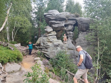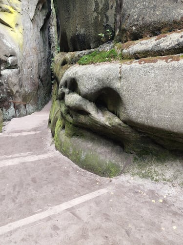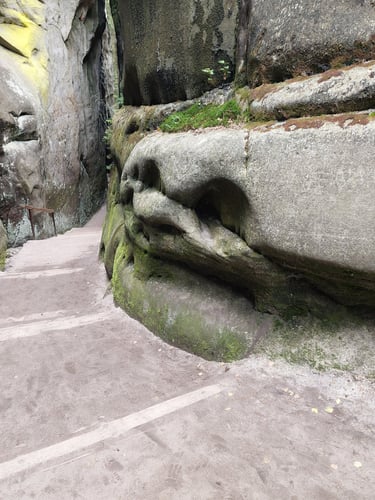Dauguma uolų turi pavadinimus. Vieni suprantami, bet kiti nelabai... Kaip pastebėjo viena bendrakeleivė - „kokius grybukus reikėjo suvalgyti, kad tuos pavadinimus sugalvoti“. 🤔 Na, spręskite patys – Cukraus galva, Gotikiniai vartai, Dramblių aikštė, Velnio tiltas, Perkūno akmuo, Meilužiai, Eliziejaus bokštas, Vėžlys, Meras ir Merienė, Pelės urvas...