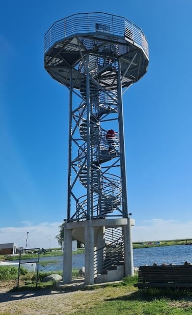 Į Drevernos apylinkes, marias, Naglių gamtinį rezervatą galėsite pažvelgti iš 15 metrų aukščio apžvalgos bokšto. Bokštas nėra aukštas ar "baisus", bet kai yra prie pat marių, atsiveria gražus vaizdas. Net mano žmona bijanti aukščio jį įveikė! Bet kas bijo skylėto pagrindo po kojomis tam bus sunku. Ir reikia lipti tada, kad virš tavęs niekas nelipa, kitaip ant galvos byrės smėlis, nuo virš tavęs lipančio batų. Yra stacionarūs žiūronai. Beje puikūs. Galima stebėti besideginančius kitame krante 😊.